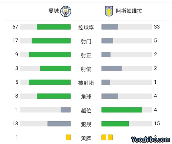 全场比赛结束,最终曼城3-1阿斯顿维拉。