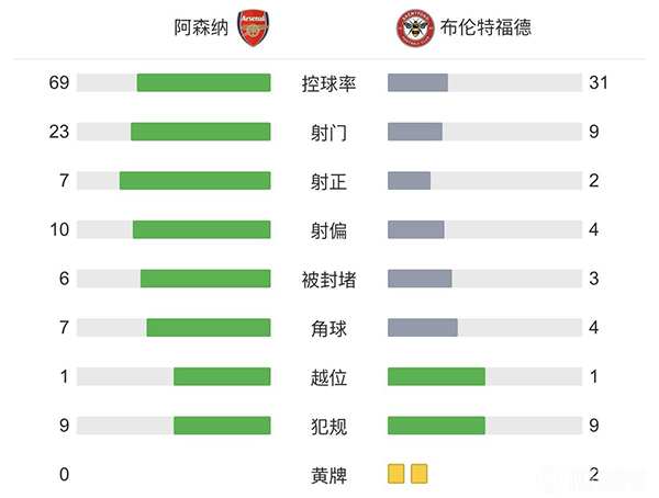 全场比赛结束,最终阿森纳1-1布伦特福德。