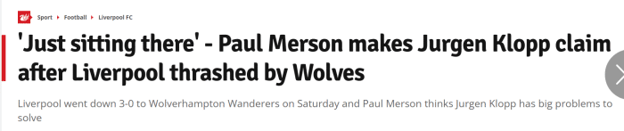 178直播02月05日讯 ,利物浦在联赛第22轮客场0-3不敌狼队。赛后,阿森纳名宿默森在接受《利物浦回声报》采访时表示,克洛普已经不知道如何调整了。