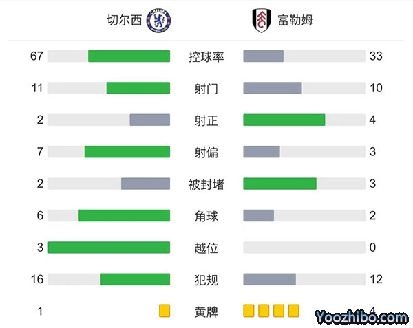 全场比赛结束,最终切尔西0-0战平富勒姆。