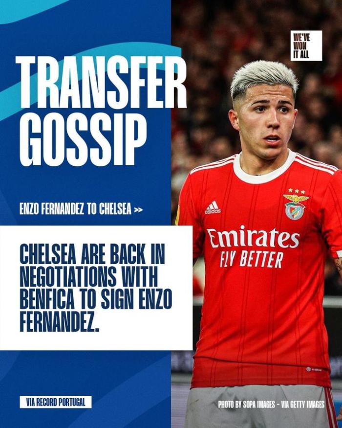 该媒体表示,切尔西曾经在冬窗尝试签下恩佐,但本菲卡只接受恩佐以违约金的方式离开,这笔交易最终告吹。