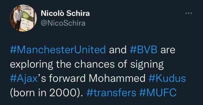 斯基拉表示,曼联和多特正在探索从阿贾克斯签下库杜斯(出生于2000年)的机会。