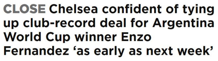 178直播01月02日讯 据英国媒体talksport报道,切尔西有信心在最早下周就敲定恩佐-费尔南德斯。