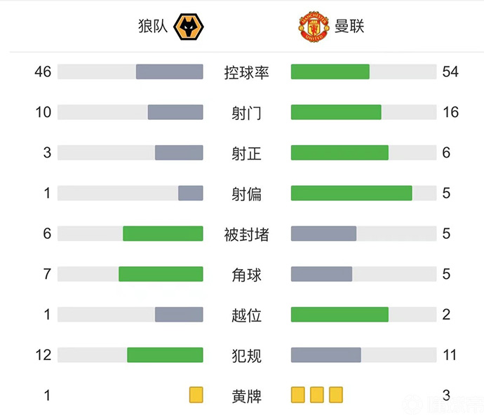 下半场补时5分钟,第94分钟,狼队左路角球开到禁区希门尼斯头球被德赫亚神勇扑出。最终,曼联客场1-0狼队。