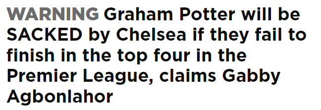 “但是像切尔西这样的球队如果赛季结束时没法打进前四,恕我直言,我认为波特肯定会下课。”