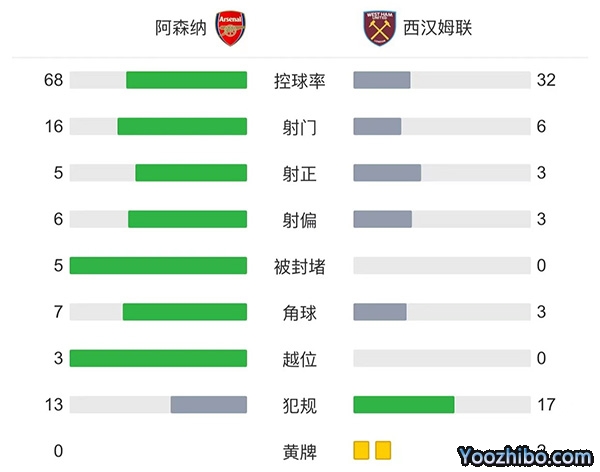 全场比赛结束,最终阿森纳主场3-1逆转西汉姆。