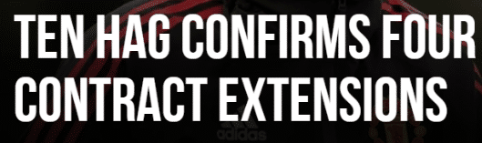 滕哈格在接受采访时说:“我可以确认我们已经和拉什福德、卢克-肖、达洛特、弗雷德续约1年,我非常高兴我们的球队正在朝着正确的方向前进。”