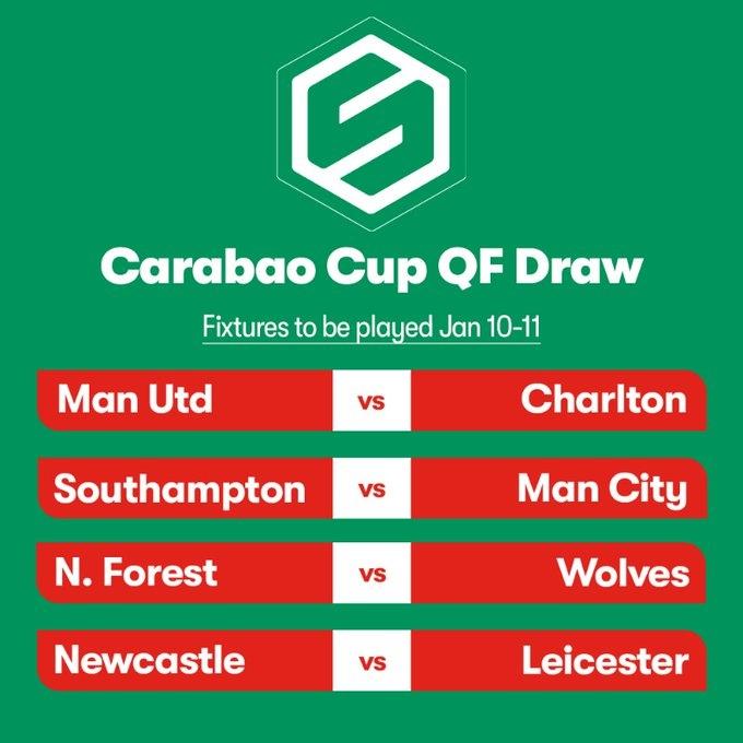 178直播12月23日讯 今天凌晨,联赛杯8强对阵抽签结束,曼联对阵查尔顿竞技,曼城将战南安普顿。