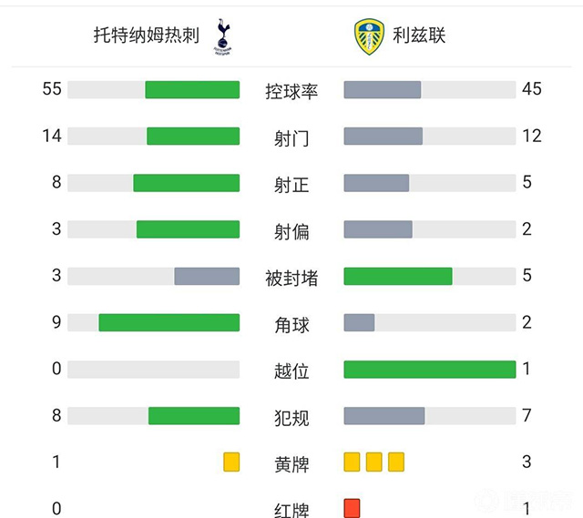 第42分钟,库珀头球摆渡,克里斯滕森头球接力送入禁区,罗德里戈顺势凌空扫射得手,热刺1-2利兹联!