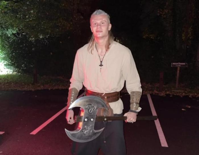 维京战士!哈兰德万圣节手拿利斧,霸气出镜
