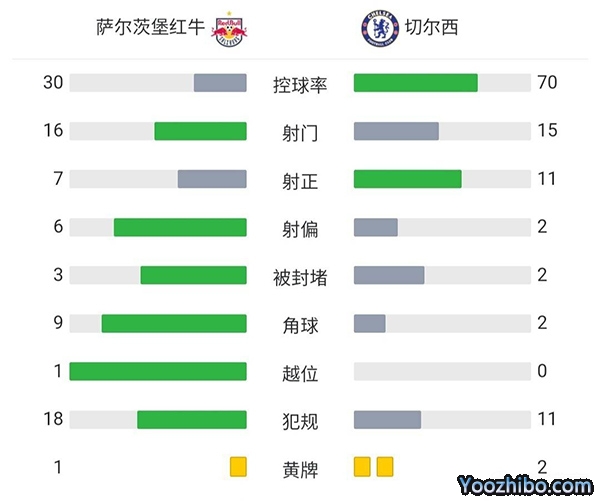 全场结束,切尔西2-1萨尔茨堡红牛。
