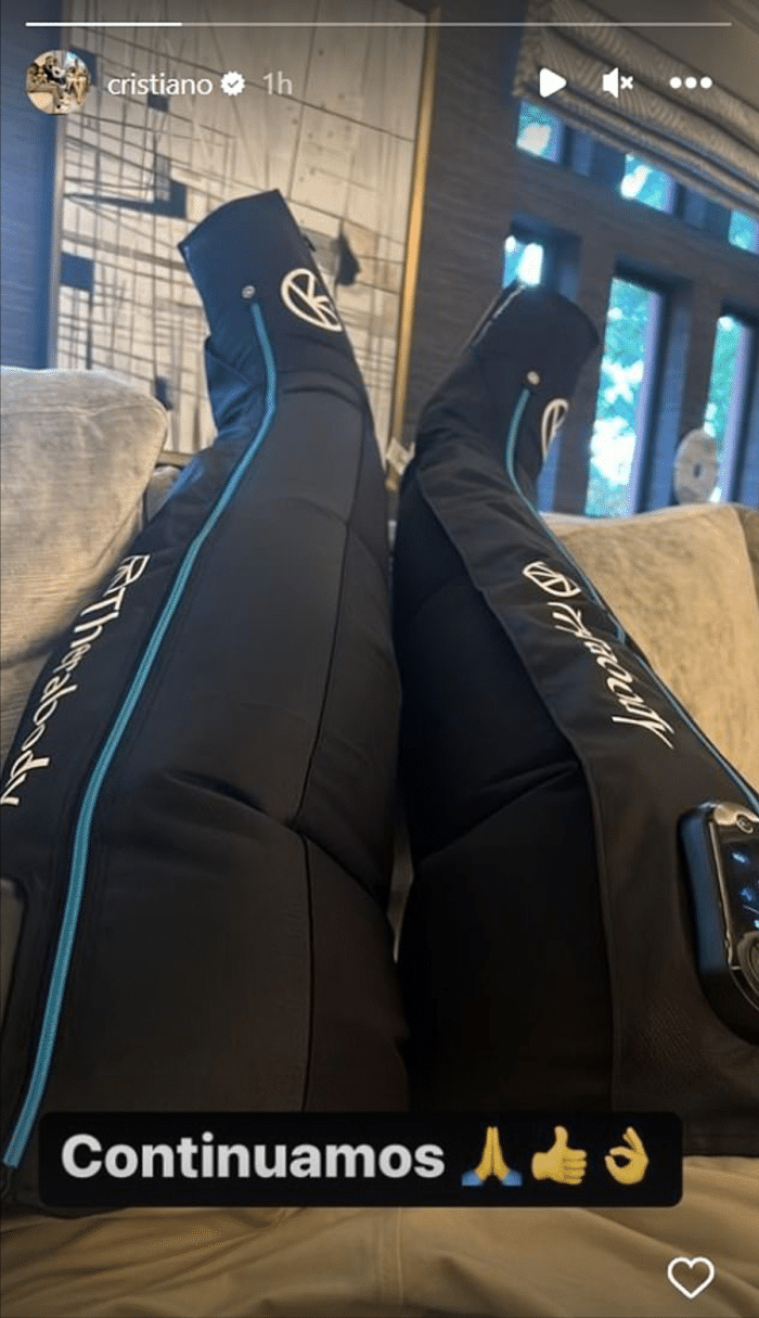 在周五的训练后,37岁的C罗发布了自己休息的照片并且写道:「继续保持。」