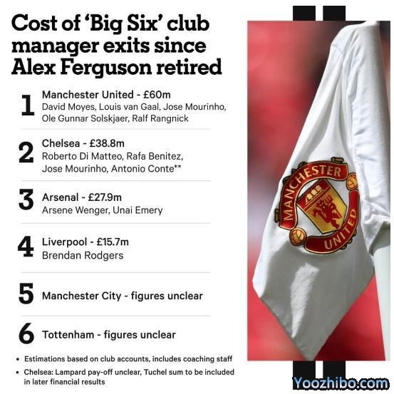 178直播10月09日据TheAthletic统计,自从弗格森退休之后,曼联是英超解雇主教练花费最多钱的俱乐部。