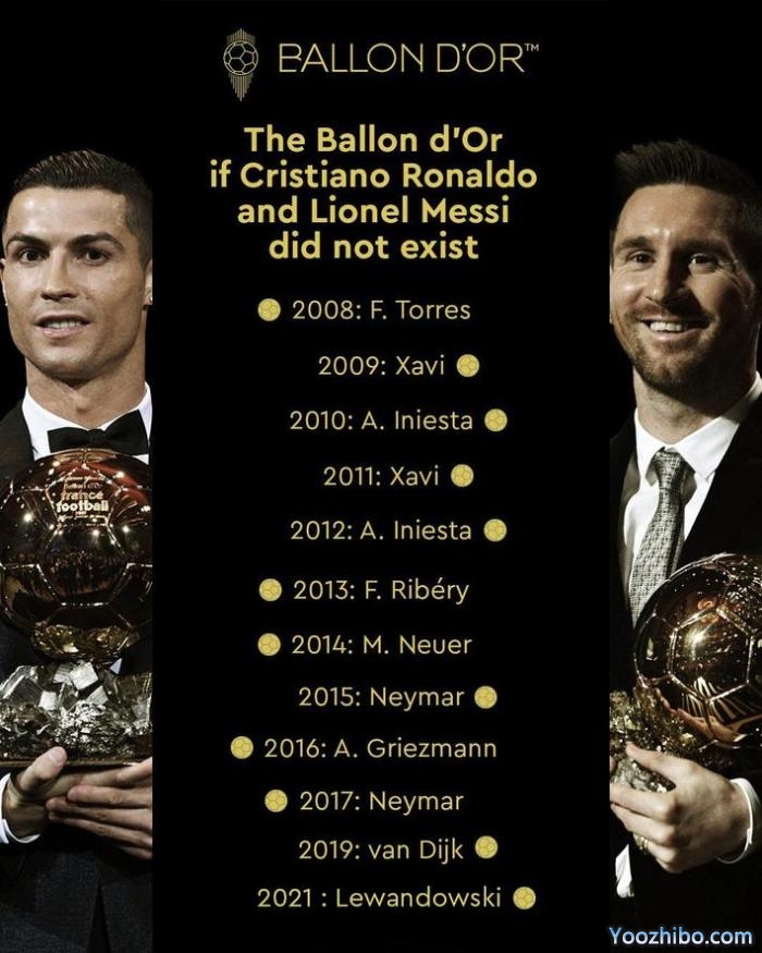 178直播10月02日讯 消息,金球奖官方晒出了如果梅西C罗不参与评选的金球奖得主,哈维和内马尔两次获奖。