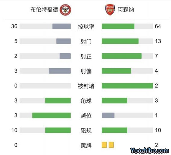 全场比赛结束,阿森纳3-0击败布伦特福德。
