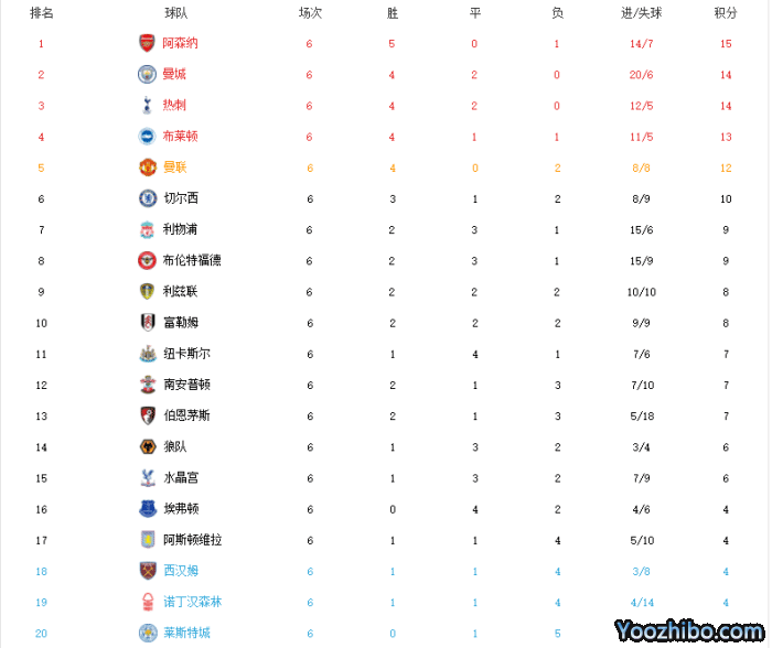 178直播09月05日讯 ,英超第6轮的比赛已经全部结束争夺,本轮曼联主场3-1送阿森纳首败,红魔豪取4连胜。曼城和利物浦都战平没有拿到3分,切尔西绝杀西汉姆联,布莱顿6轮斩获13分成为最大黑马。本赛季的英超可以说大乱斗,阿森纳、热刺、曼城、利物浦、曼联和切尔西,群雄并起,冲击冠军。
