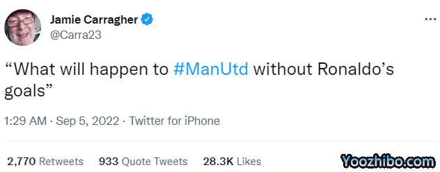 卡拉格赛后引用了许多C罗球迷的一句话,表示“如果没有C罗的进球,曼联会是什么样”,用以反讽C罗和他的球迷。