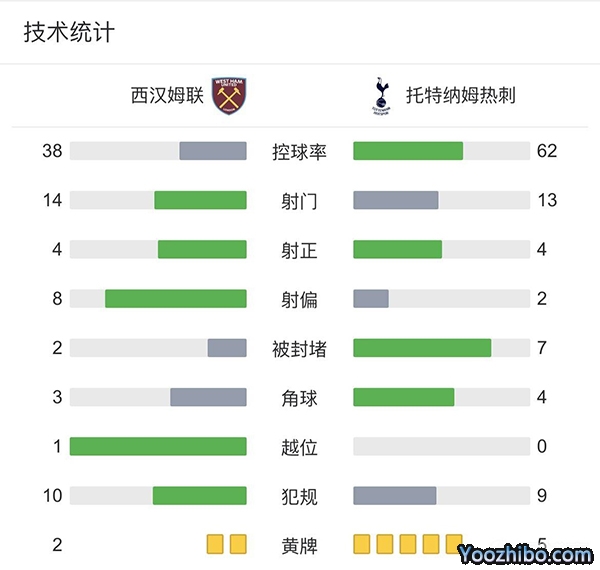 全场比赛结束,热刺客场1-1战平西汉姆联。