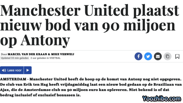 178直播08月27日讯,来自荷兰电信报著名记者Mike Verweij的最新消息,英超豪门曼联俱乐部已经向阿贾克斯提出了第3份报价求购安东尼。