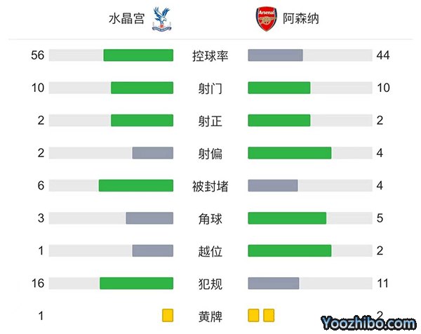 全场比赛结束,最终阿森纳客场2-0水晶宫。