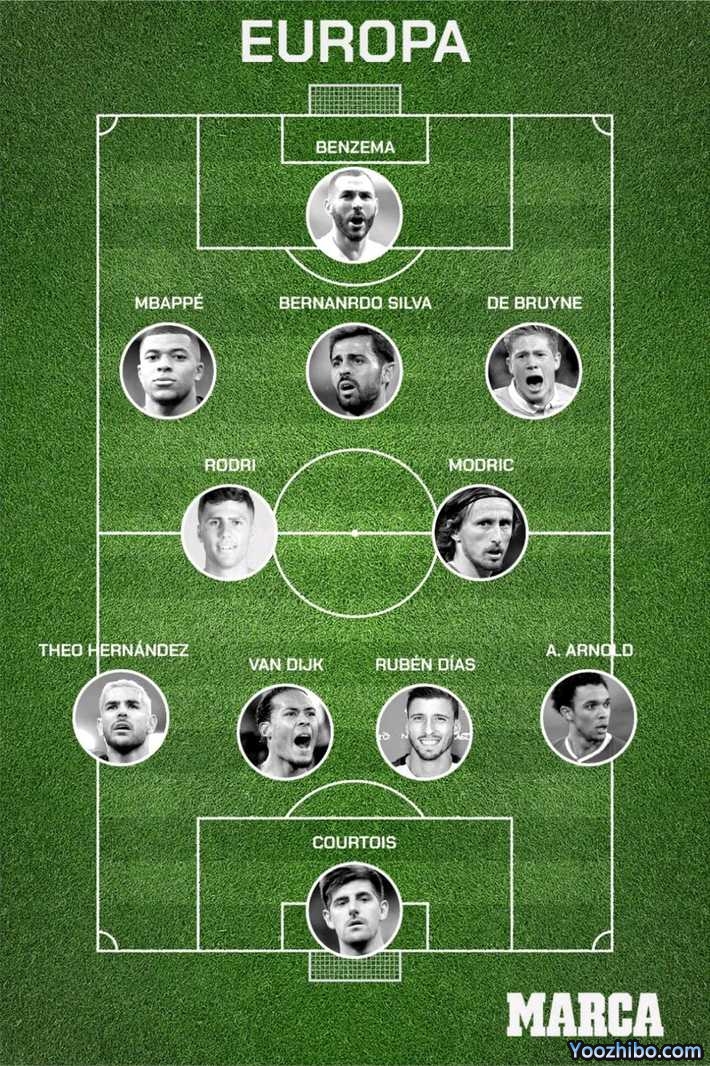 前场:姆巴佩(巴黎圣日耳曼/法国)、贝尔纳多-席尔瓦(曼城/葡萄牙)、德布劳内(曼城/比利时)