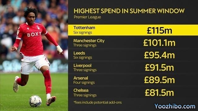 178直播07月21日讯 热刺今夏已经引进了理查利森、朗格莱和斯彭思等球员,转会支出1.15亿英镑。曼城引进了哈兰德和菲利普斯等,支出1.011亿,位居第二。