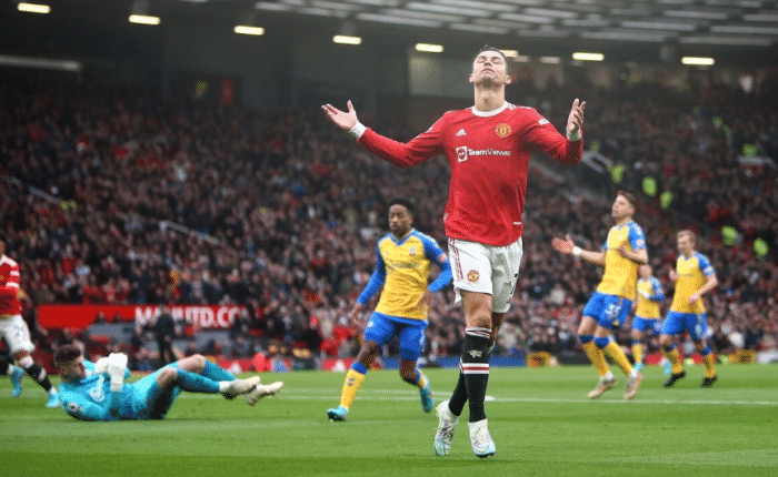 然而就是这样一个近乎完美的战神,在曼联成绩糟糕的困境中暴露出了极具争议的两幕,第一幕发生在北京时间2021年10月24日,C罗在与利物浦的比赛中心态爆炸,出现连踢柯蒂斯-琼斯3脚的罕见画面,险些酿造冲突,当时曼联半场被利物浦狂灌4球,最终0-5输给了利物浦。