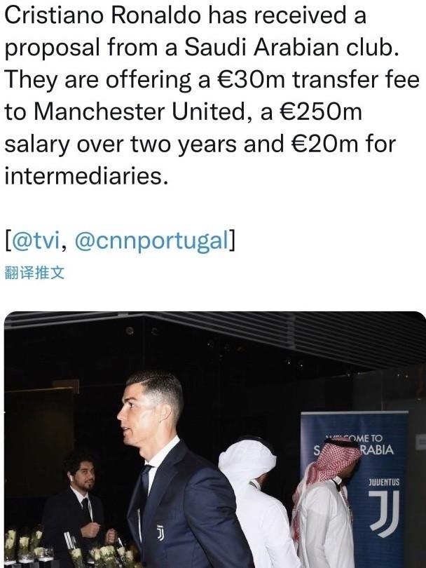 不仅仅如此,这家沙特联赛豪门还愿意给C罗的经纪人门德斯,提供2000万欧的中介费,至于C罗的待遇,则是2年2.5亿欧元的巨额合同。如果传闻成真,C罗将轻松超越姆巴佩、梅西、内马尔等人,成为全世界薪水最高的足球运动员。