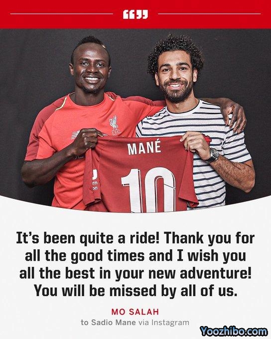 178直播06月23日讯 昨天,拜仁官宣签下利物浦边锋马内,随后萨拉赫在社交媒体上发文,向自己这位进攻搭档告别。