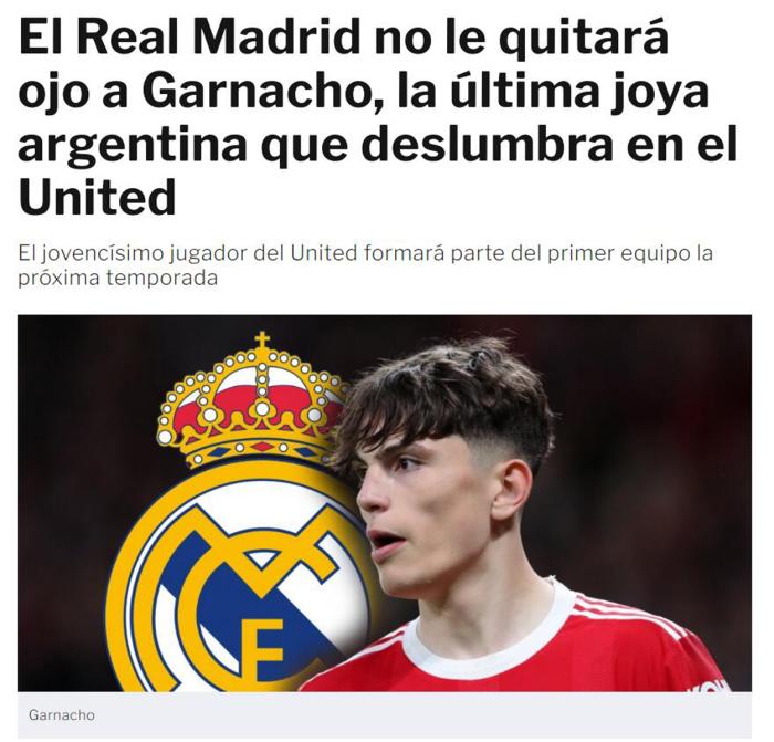 178直播06月22日讯 据西媒报道,曼联左边锋亚历杭德罗·加纳乔在阿根廷队得到梅西的认可和称赞后,皇家马德里正在密切关注其情况,可能伺机从红魔挖走他。
