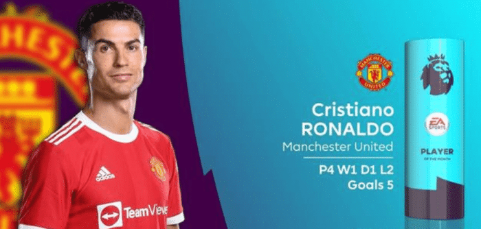 数据统计,在MVP奖项上,C罗创造了3大纪录,第一、职业生涯首次实现单赛季“8夺MVP奖项”,1个赛季MVP、2个英超MVP(分别在去年9月和今年4月份)、5个队内月度MVP(分别在去年9月、10月,今年3月、4月、5月);第二、职业生涯赛季MVP奖项数量达到了4个,追平了德赫亚,并列曼联队内最多,此前在2003/04赛季、2006/07赛季、2007/08赛季也都拿到了曼联队内赛季MVP;第三、C罗职业生涯6夺英超月度MVP,是曼联队内第一人。