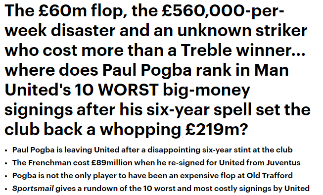 178直播06月03日讯 《每日邮报》今天盘点了曼联英超时代最糟糕的十笔引援,桑切斯、迪马利亚和博格巴分列前三。