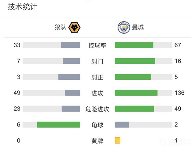 第60分钟,福登横传门前被努里解围,德布劳内补射再次扩大比分,狼队1-4曼城。
