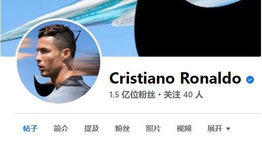 178直播05月10日讯 C罗的INS、脸书和推特粉丝都已经破亿,推特超1亿,脸书超1.5亿,INS超4.3亿。他的微博粉丝数也已经接近800万。