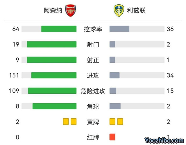 第10分钟,扎卡左路斜传,马丁内利得球沿肋部推进至底线附近低平球传中,中路包抄的恩凯提亚推射破门,阿森纳2-0领先利兹联。
