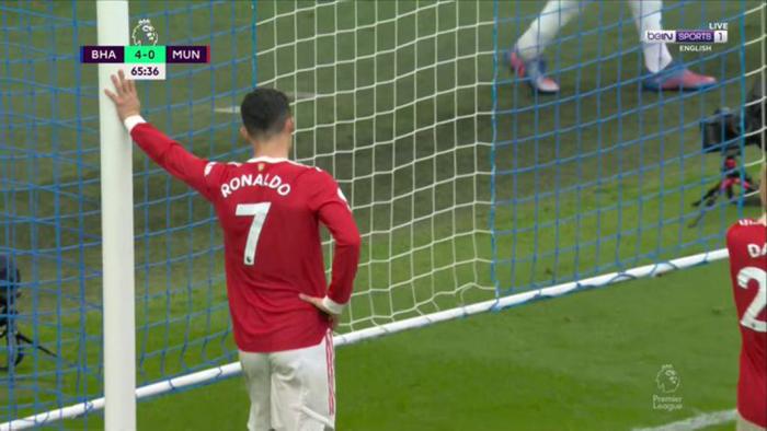 在大比分落后时,曼联巨星C罗被发现气得都笑了起来,而布莱顿球迷则哈哈大笑,幸灾乐祸。主队观众高喊:「跟布莱顿一样,你们的城市也是蓝色的。」