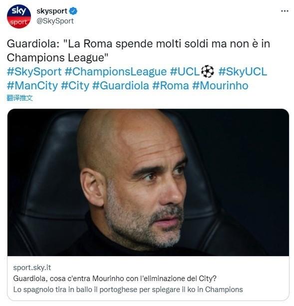 随后,瓜帅话锋一转拿穆里尼奥的罗马来举例:“对我来说,这完全不是钱的问题,但球迷们不明白这一点。比如罗马也花了很多钱,但他们甚至没能得到参加欧冠的资格。”