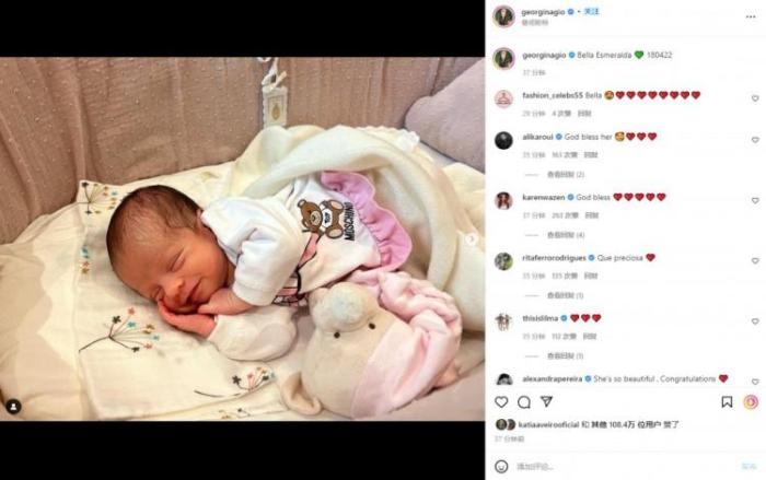 美丽的翡翠!乔治娜晒C罗新生女儿照片