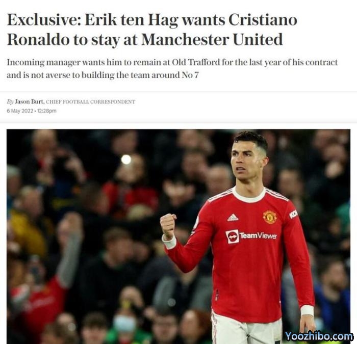 178直播05月07日讯 《每日电讯报》消息,曼联新帅滕哈格希望C罗下赛季留队履行完最后一年合同。