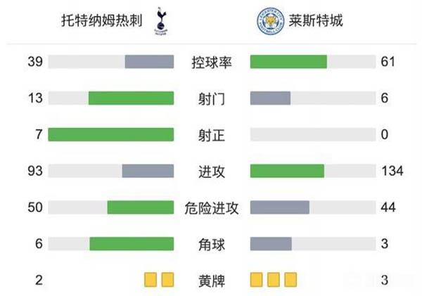全场比赛结束,热刺3-1莱斯特城!