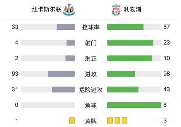 全场比赛结束,利物浦客场1-0战胜纽卡斯尔。