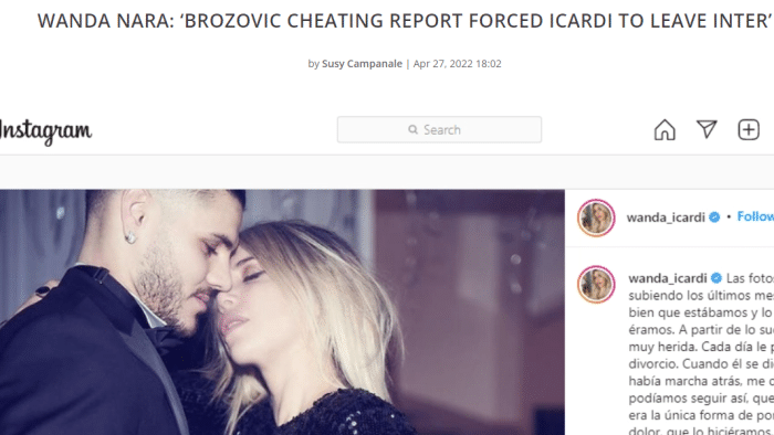 2019年2月,有报道称旺达与国米中场布罗佐维奇有染,当时媒体还公布了一段录音证据,称是两人对话,但人们那时候就认为声音听起来并不吻合。