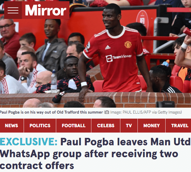 《镜报》表示,博格巴已经决定离开红魔,他与曼联球迷关系破裂,也看不到球队未来在哪。球员仍未决定下一站去哪里,但他已经告知队友会离队,甚至已经退出了球队群聊。
