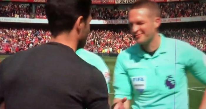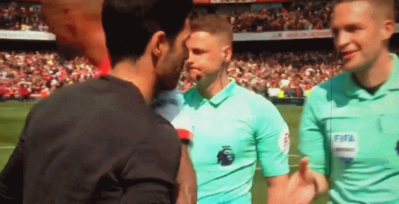 但比赛结束后的一幕,更让曼联拥趸产生「阴谋论」的想法。当时阿尔特塔到场地中与裁判组握手,鲍森甚至用左眼向他打了一个眼色。英格兰球迷普遍对使眼色这个小动作非常敏感,这起源于2006年德国世界杯上的C罗。当时还是小小罗的葡萄牙边锋,在淘汰赛面对英格兰队时,提醒主裁罚下蹬踏卡瓦略的鲁尼,随后向场边眨眼,顿时成为英格兰球迷公敌。