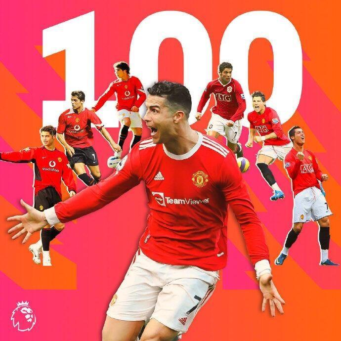 上半场C罗接马蒂奇传中,门前抢点破门,这是他在英超的第100球。