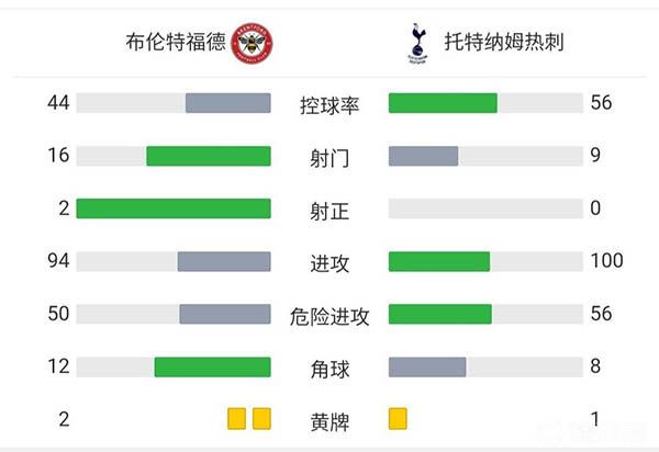 全场比赛结束,热刺0-0与布伦特福德战平。