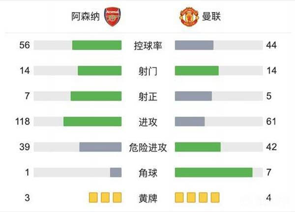 全场比赛结束,阿森纳3-1曼联。