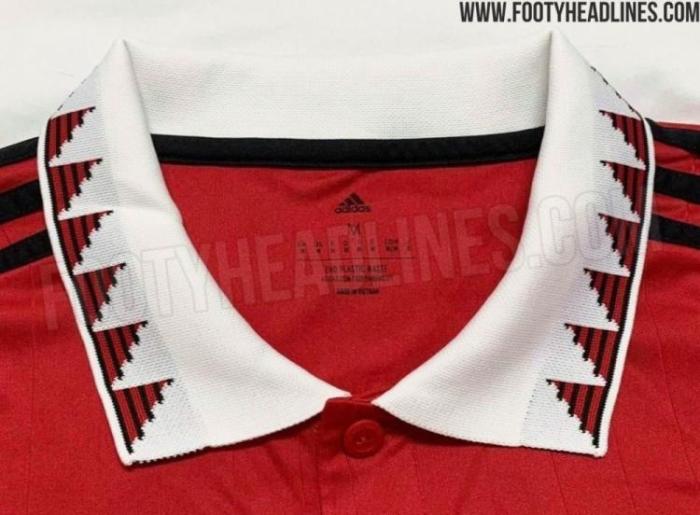 178直播04月23日讯 这是一款复古球衣,领口为白色,上面有三角形的图案,球衣主色调依然是红色。曼联历史上曾多次身穿有衣领的球衣夺冠。