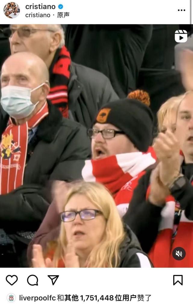 C罗写道:“同一个世界……同一项运动……同一个地球大家庭……谢谢安菲尔德。我和我的家人永远不会忘记这一刻的尊重和共情!”C罗还做出了三个感谢的表情,来表达自己对于红军球迷善举的感动。而C罗的这条动态,也在半小时内获得了超过175万网友的点赞。