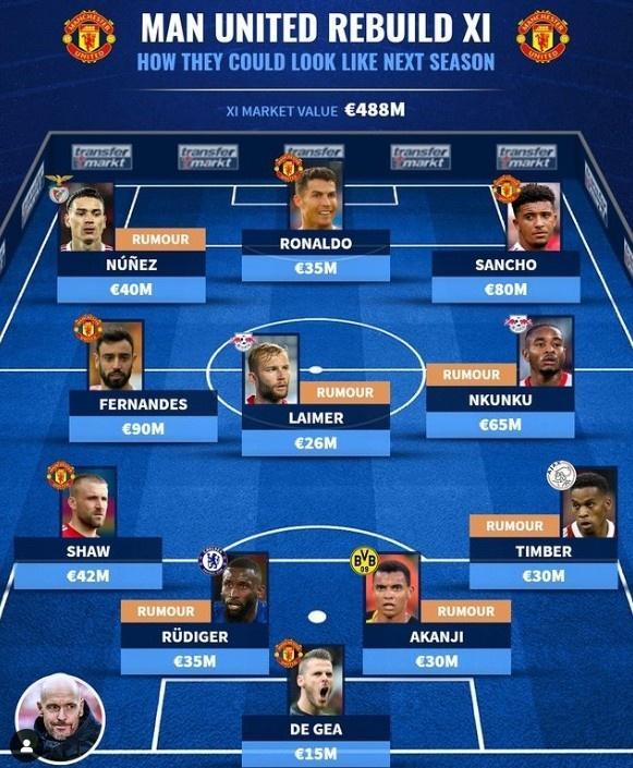 178直播04月21日讯 德国转会市场今日预测了滕哈赫上任后曼联的首发阵容,C罗领衔,多名新人加入。